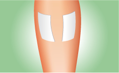 Applicare 1 cerotto sul lato destro ed 1 cerotto sul lato sinistro del polpaccio.